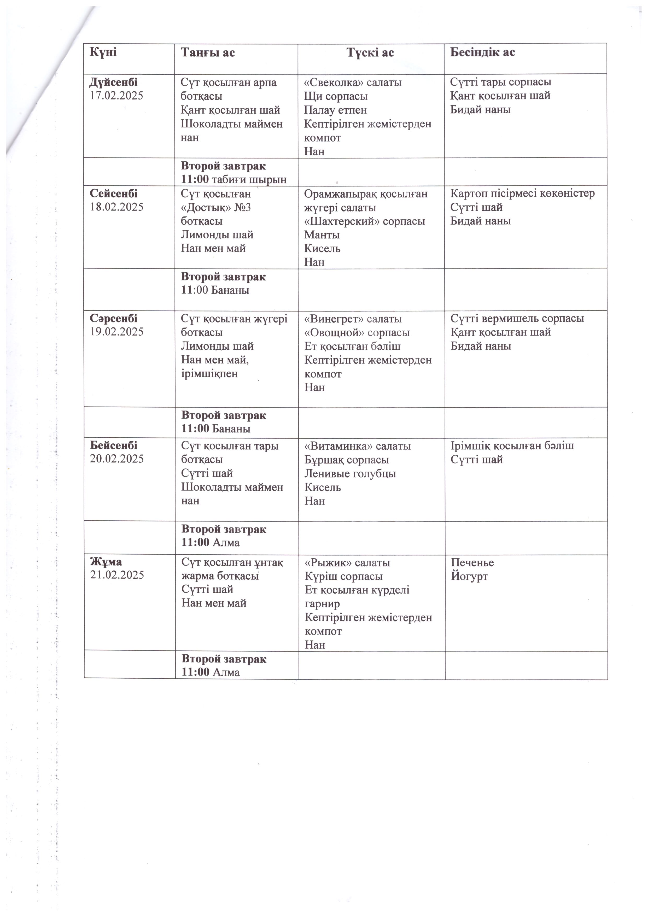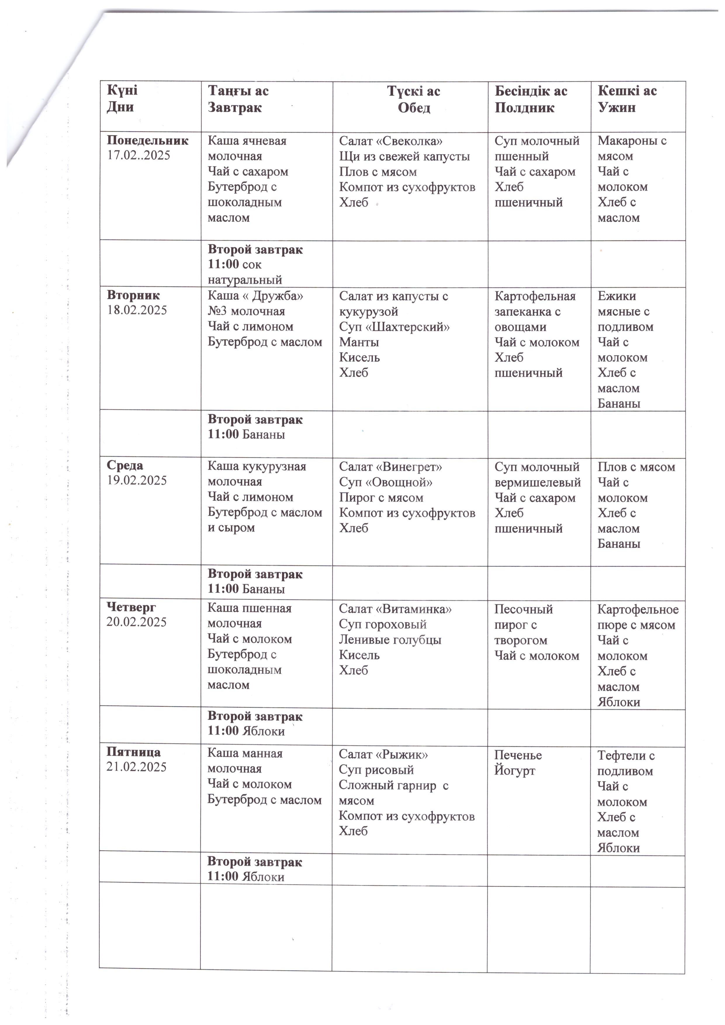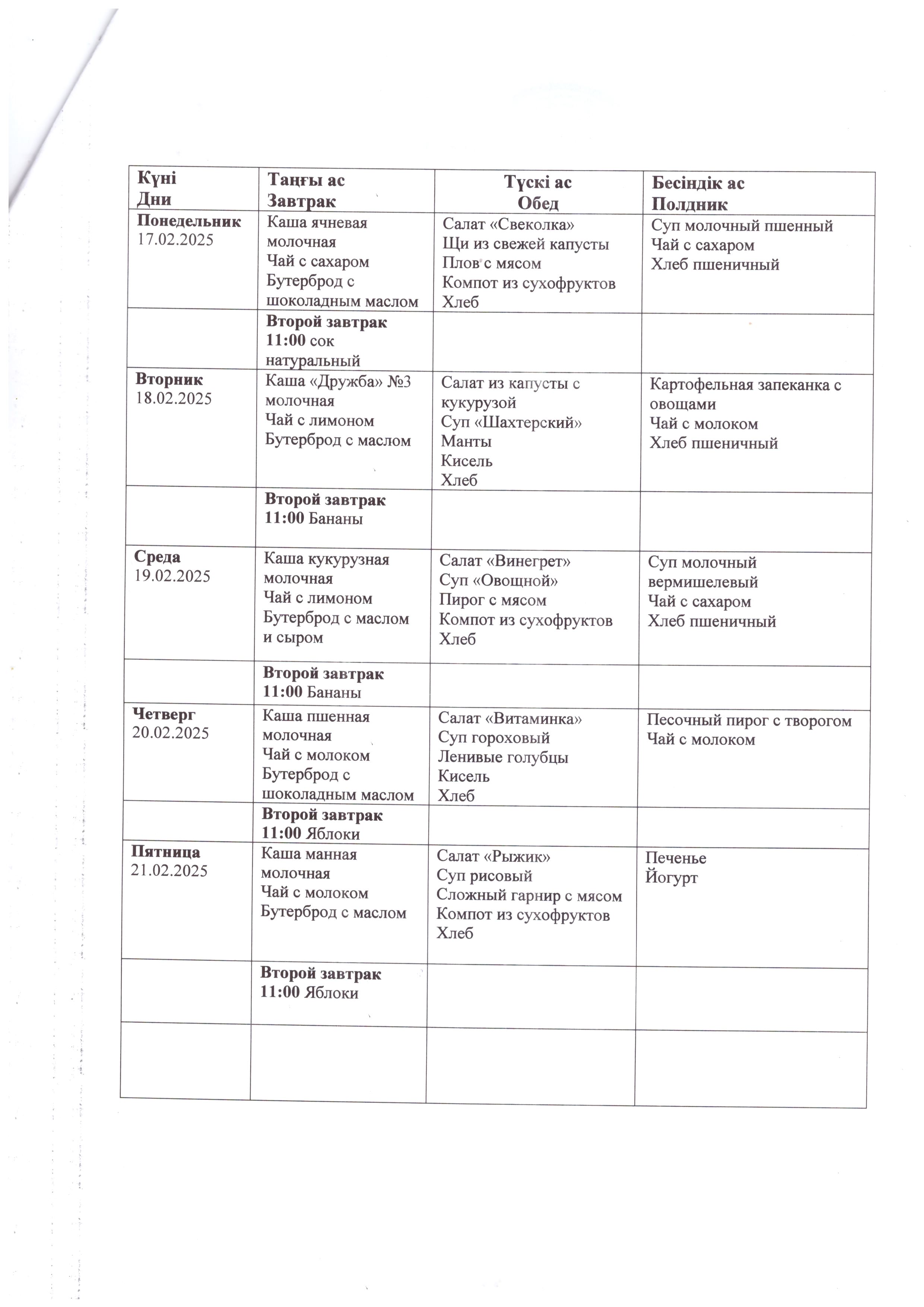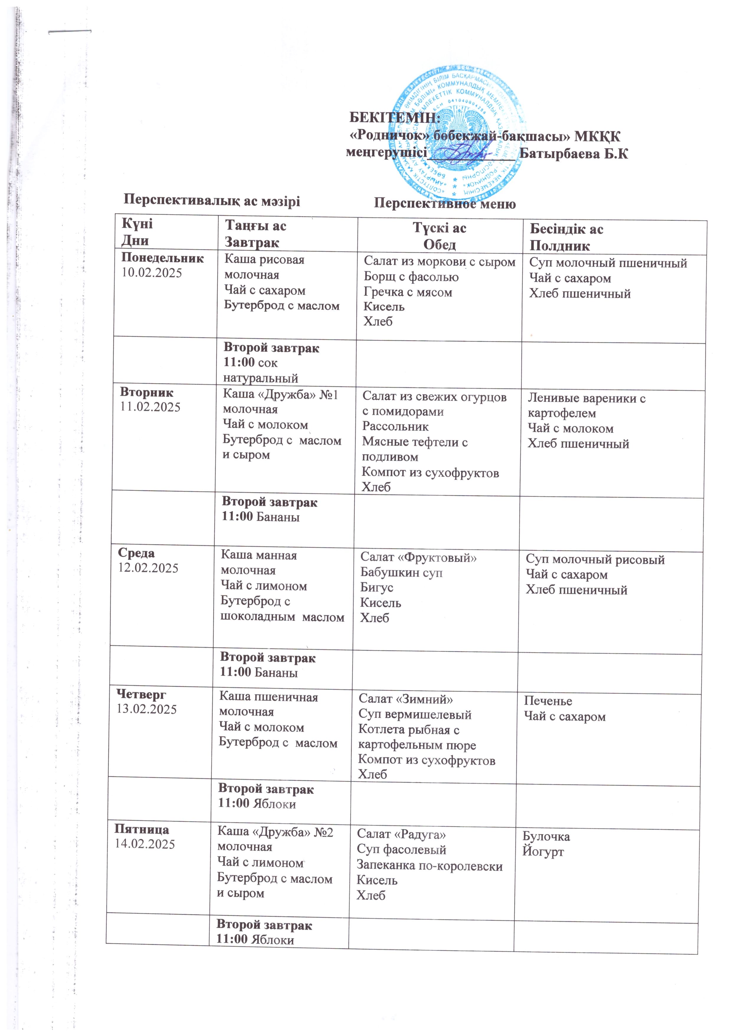 Перспективное меню с 10 февраля по 21 февраля 2025 года.