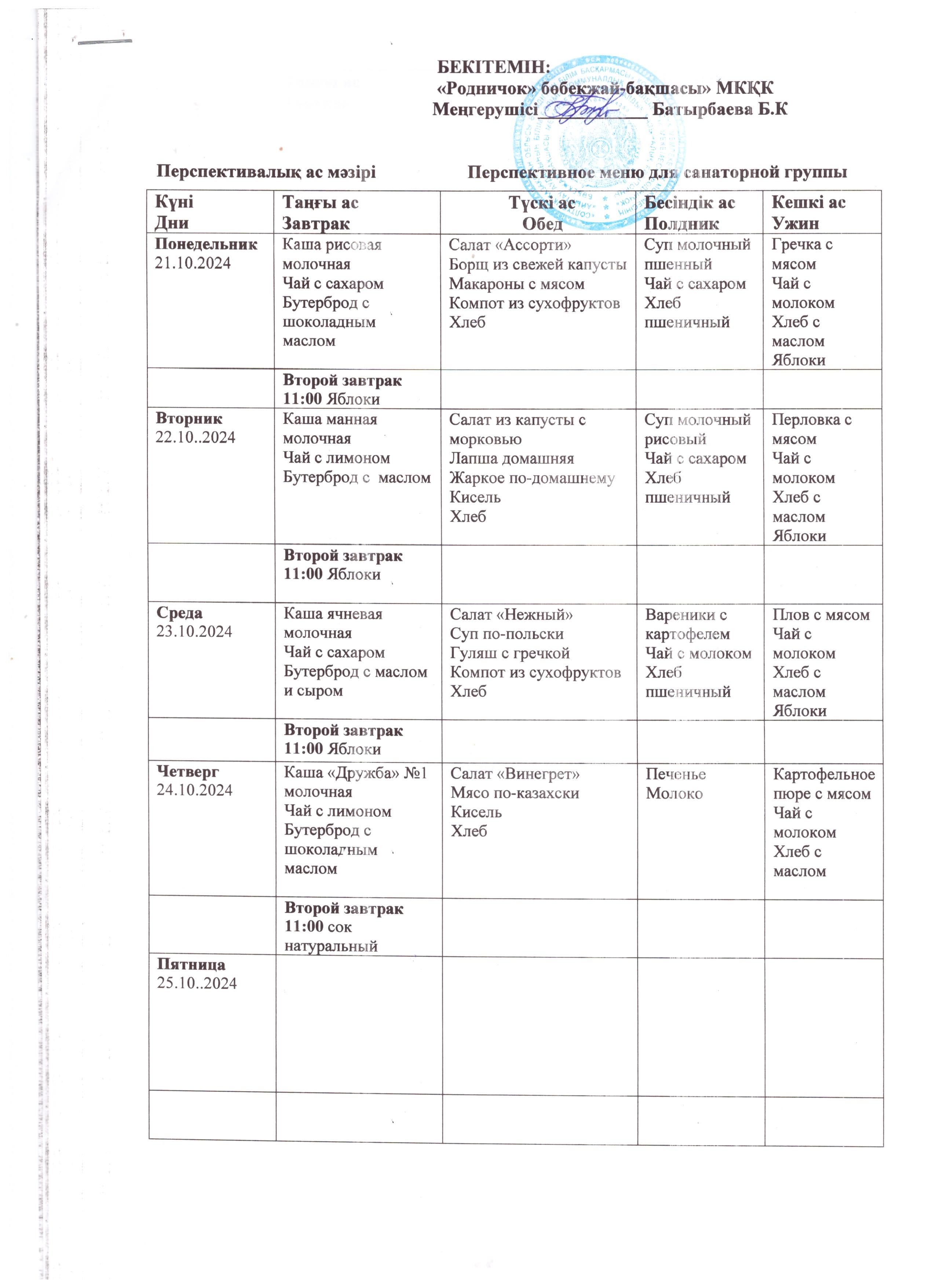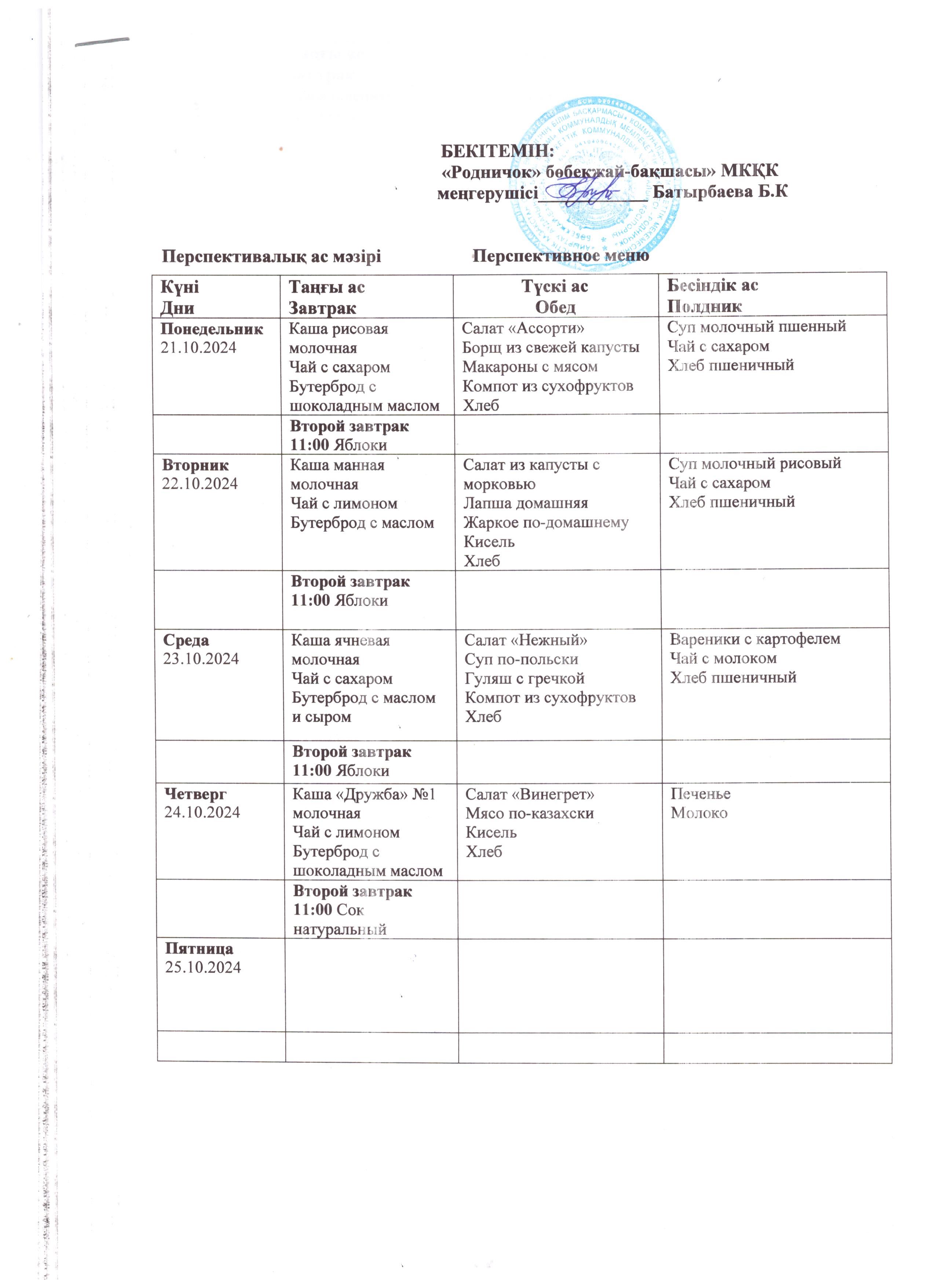 Перспективное меню с 21 октября по 1 ноября 2024 года.
