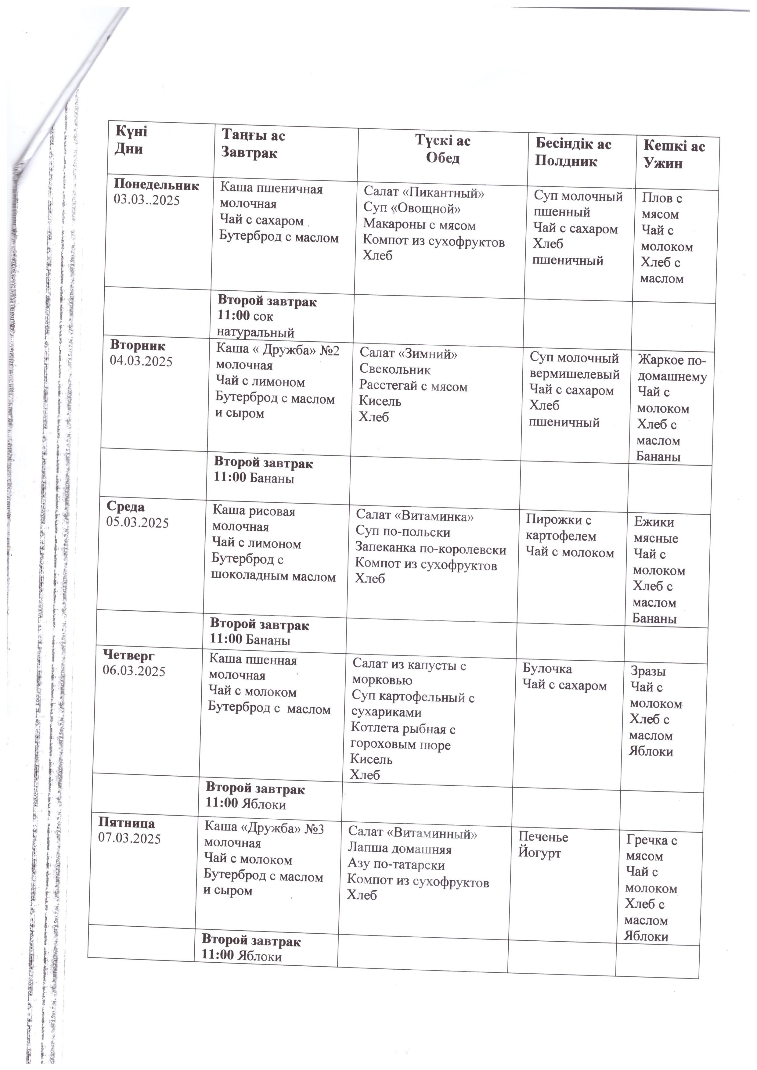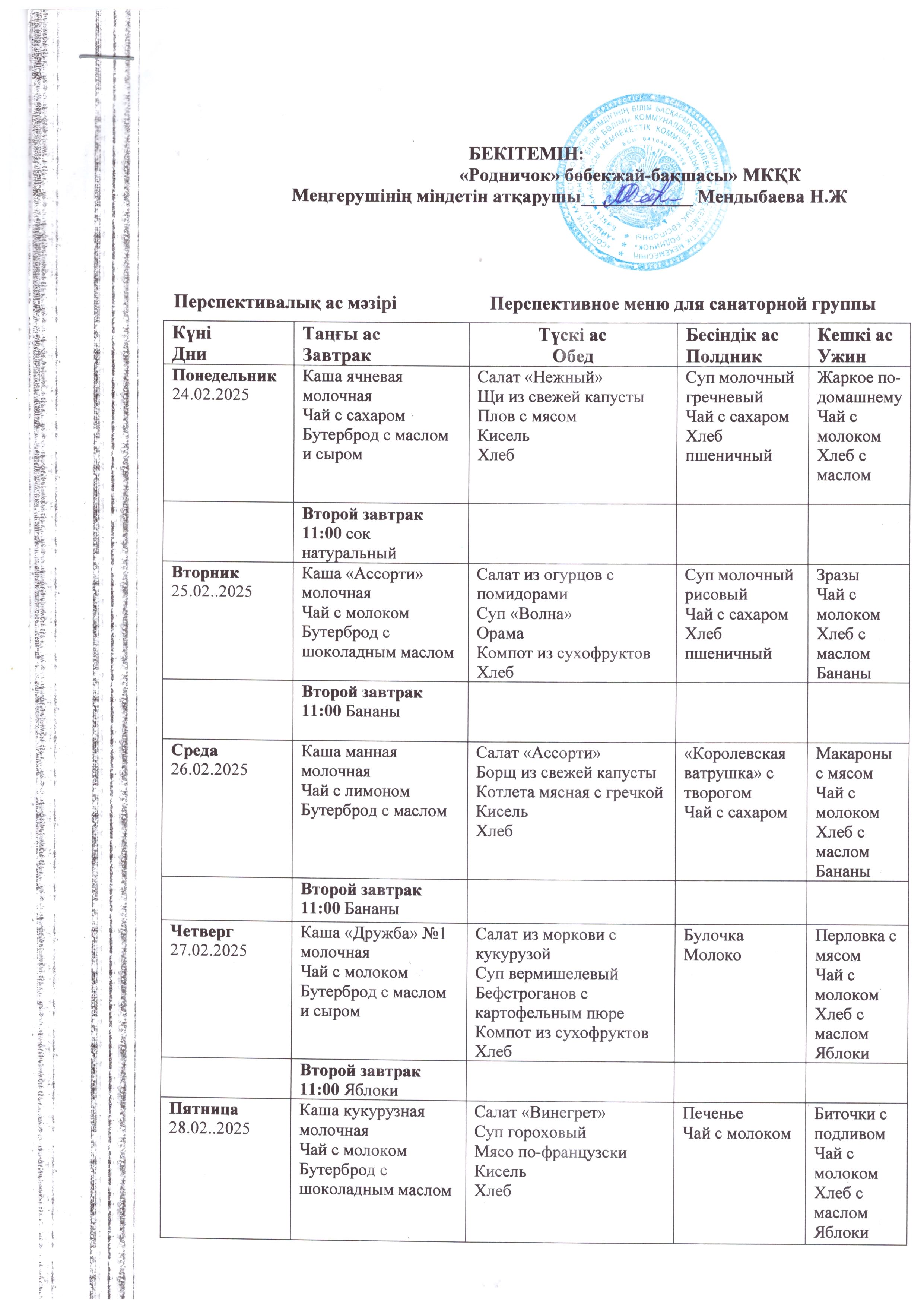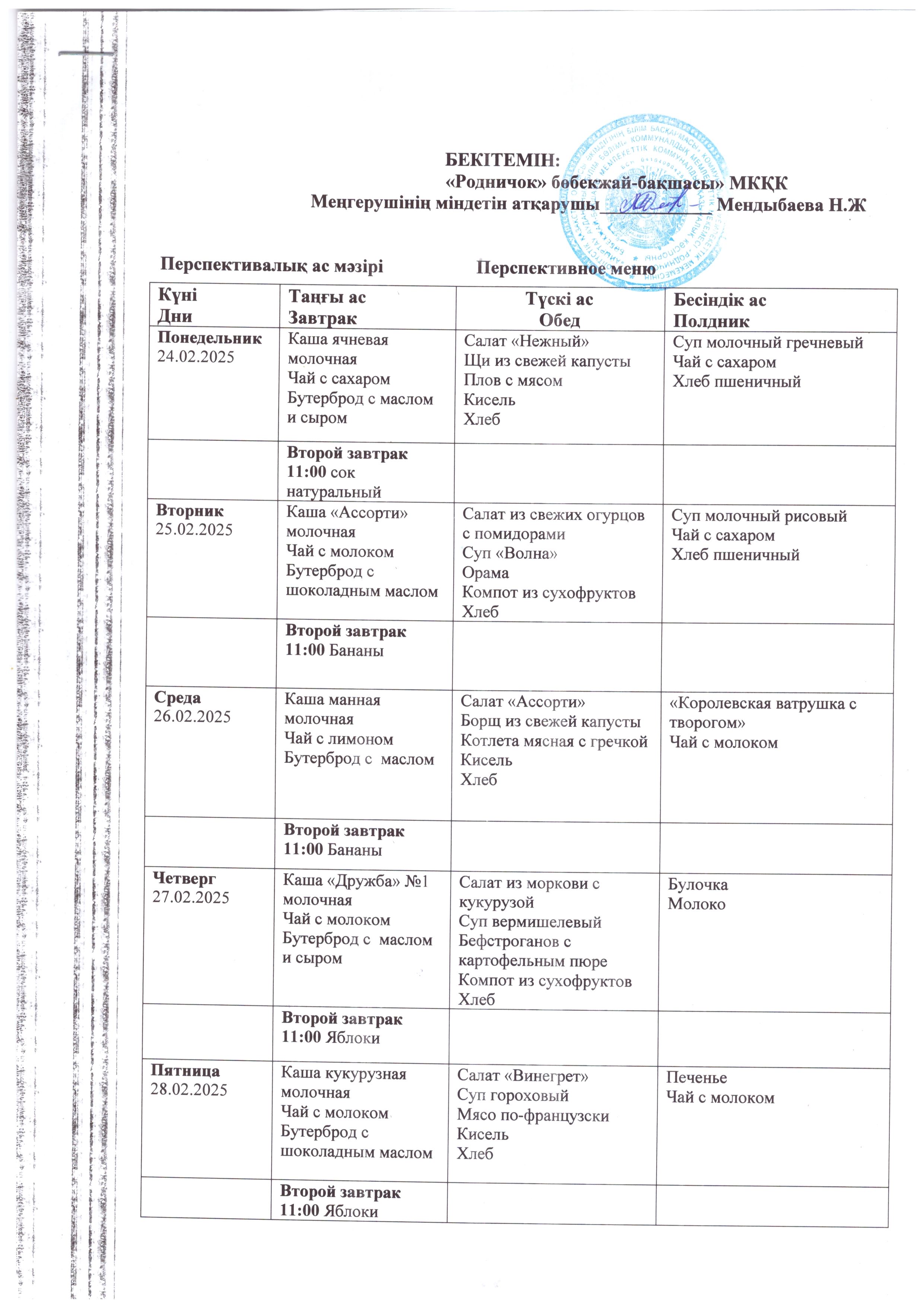 Перспективное меню с 24 февраля по 7 марта 2025 года.