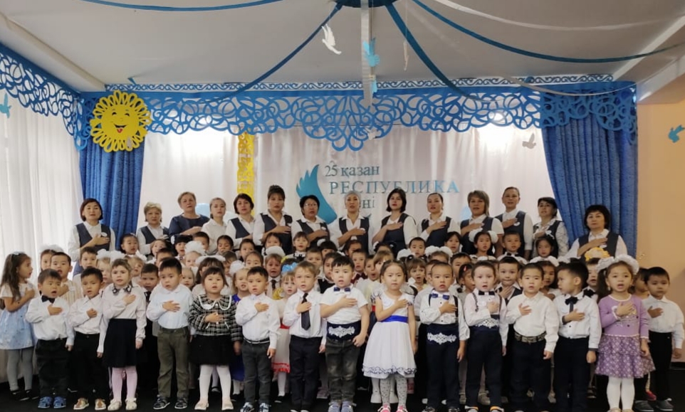 Сегодня 19 октября 2022 года в ГККП ясли-сад "Родничок" исполнили гимн Республики Казахстана.