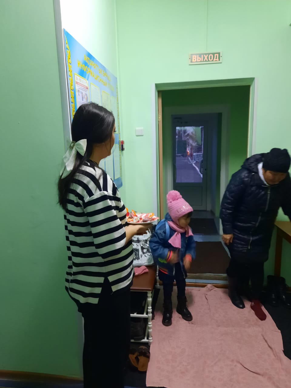 На заметку, на утреннем приеме учитель-психолог Г. Ф. Тюлебаева организовала акцию «Чудесный мир хорошего настроения». Цель акции - подарить родителям праздничное настроение, а родителей поздравить с праздником, музыкальные руководители М. Т Темирбаев и Н. В Лыткинане. Концерт, проведенный им, подарил праздничную атмосферу. На концерте заведующая нашего детского сада Б. Q. . . . . . Батырбаева поздравила школьников и сотрудников со специальным днем и вручила дипломы коллег, отмеченных за их серьезную работу.